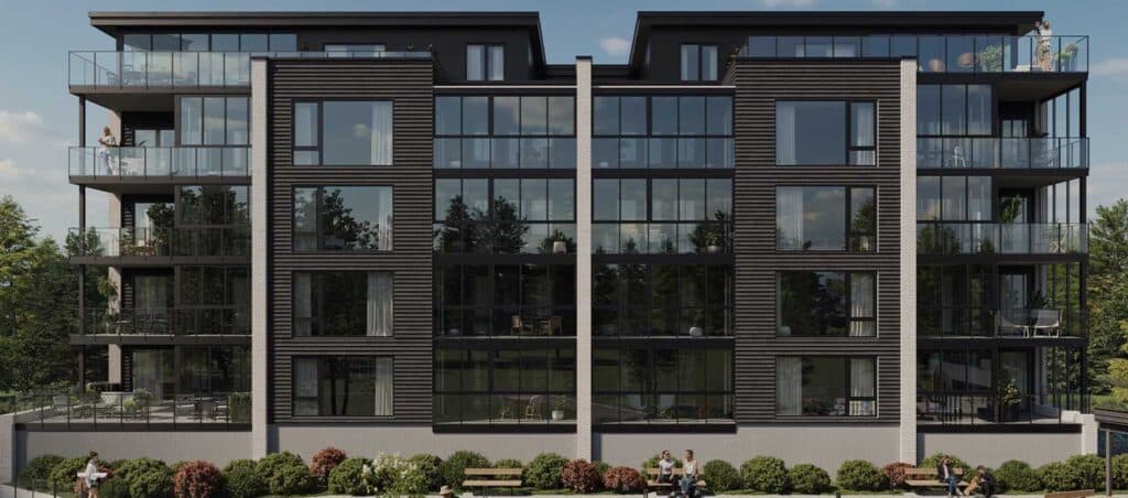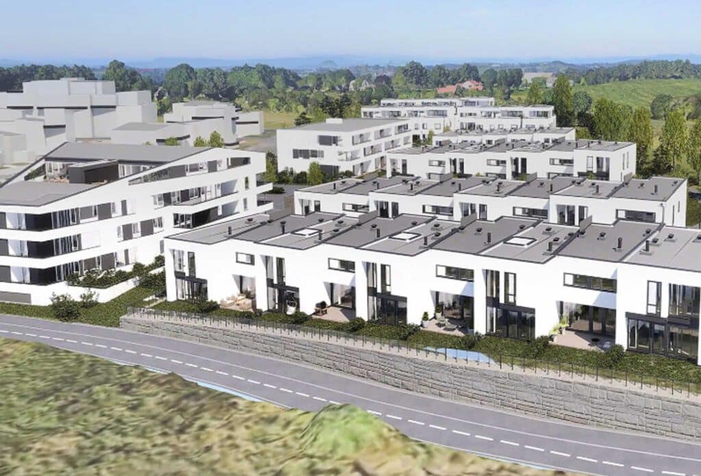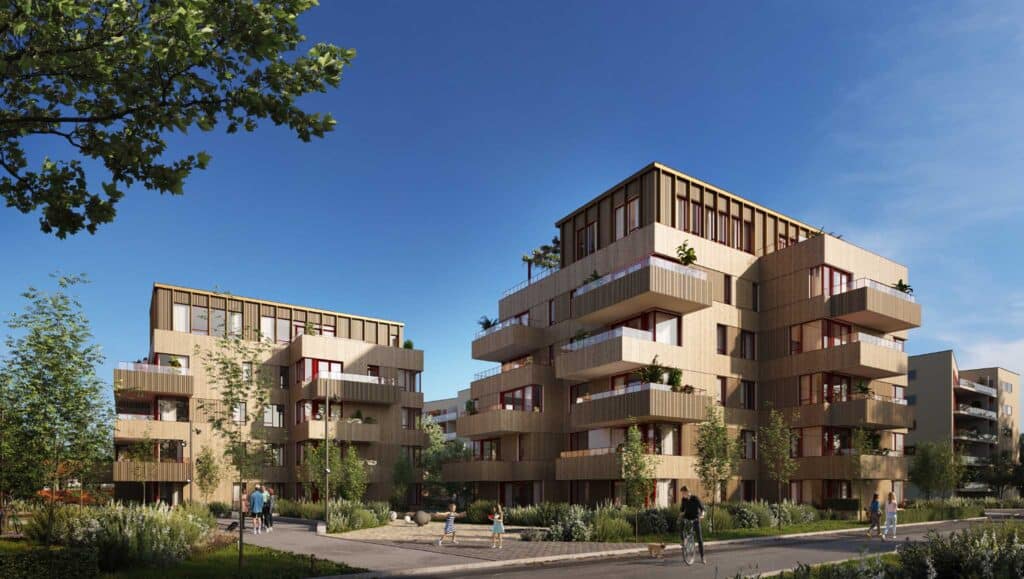 Boligprosjekt med to byggetrinn over 6 etasjer med 63 leiligheter bygget på nedgravd parkeringskjeller.